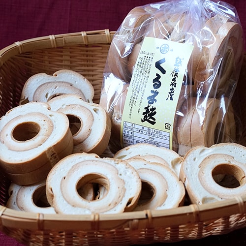 新潟名産の車麩。アルミの棒に麩の生地を巻き直火で焼き上げます。その上……